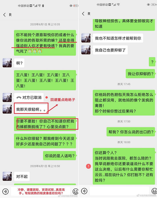 在“清风明月醉酒眠”哀求“饶谨,你放过我行吗?”无果之后,饶谨依然强行实施了性暴力。